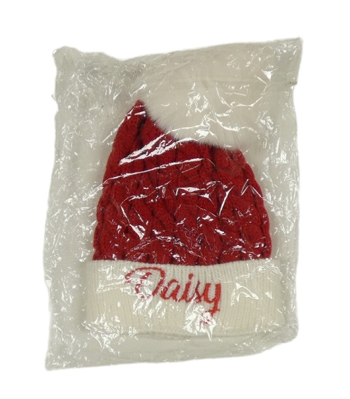 Nové - Červeno-bílá čepice s nápisem a bambulí