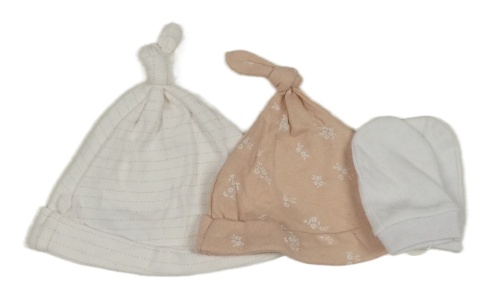 3set - Světlerůžová s kytičkami + bílo-růžová čepice + bílé rukavice