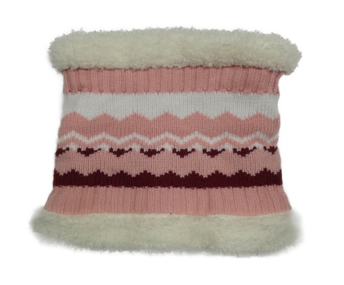 Růžovo-bílý vzorovaný pletený zateplený nákrčník