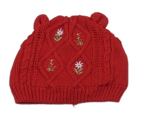 Červená pletená čepice s výšivkami květů Dunnes