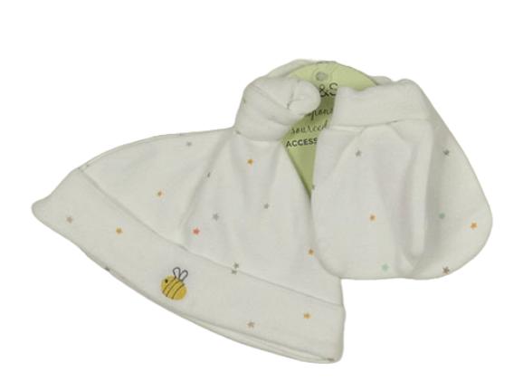 Nové - 2set - Bílá bavlněná čepice s hvězdami + rukavičky M&S