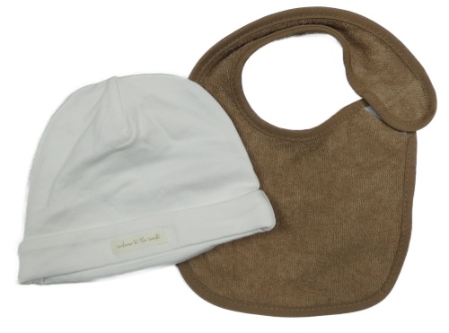 2Set - Bílá čepice mamas&papas + hnědý froté bryndák PRIMARK