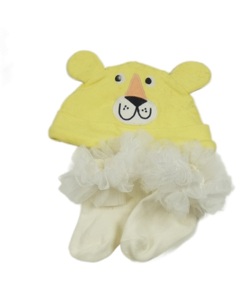 2set- žlutá čepice se lvem+ bílé ponožky s volánkem