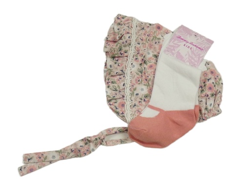 Nové - 2set- růžový čepeček s kytičkami+ bílo-růžové podkolenky