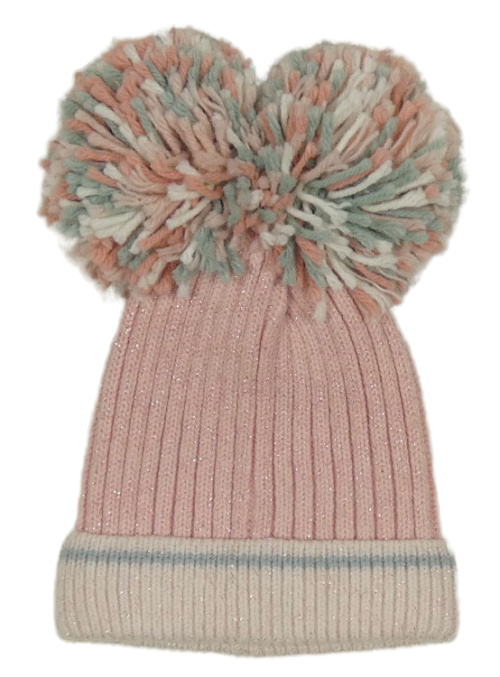 Světlerůžová pletená čepice s bambulemi George