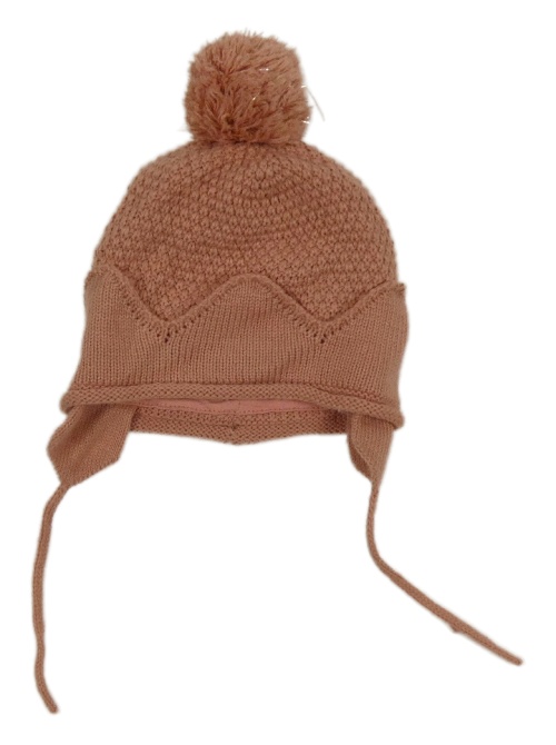 Starorůžová vzorovaná pletená čepice s bambulí Zara