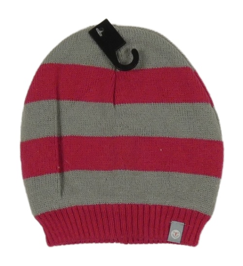 Nové - Malinovo-šedá pruhovaná pletená podšitá čepice