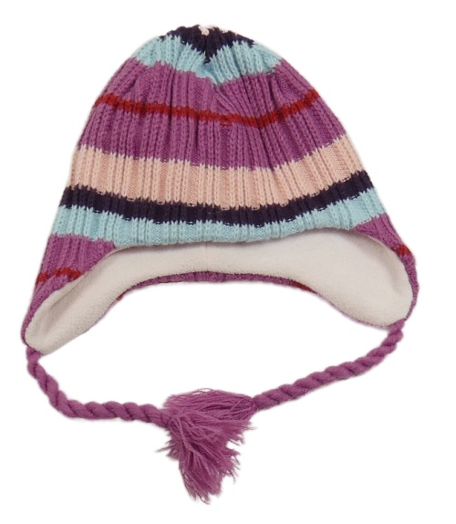 Růžovo-modrá pruhovaná pletená podšitá čepice