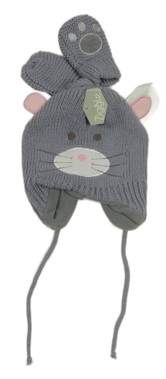 Nové - 2set - Modrošedá pletená čepice - kočka + rukavice
