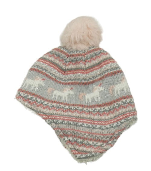 Šedo-korálová vzorovaná čepice s jednorožci a bambulí George