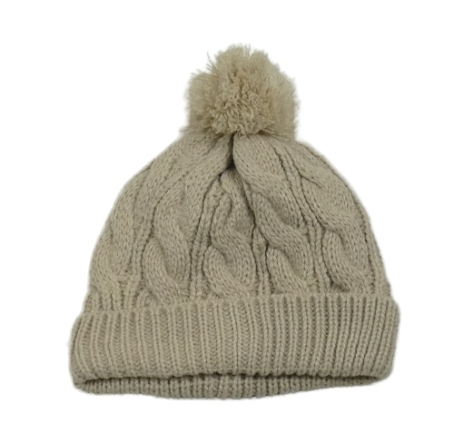 Béžová čepice s bambulí