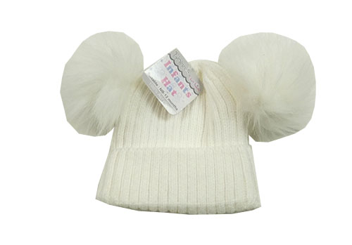 Nové - Smetanová žebrovaná pletená čepice s bambulemi