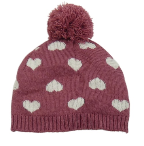Tamvorůžová pletená čepice se srdíčky a bambulí Ergee