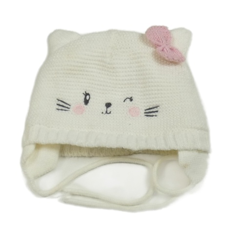 Smetanová pletená zavazovací čepice - kočička