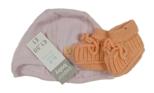 2set - Růžová žebrovaná čepice s nášivkou + meruňkové pletené capáčky