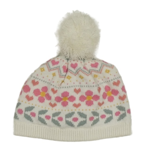 Bílo-růžová vzorovaná pletená čepice s bambulí