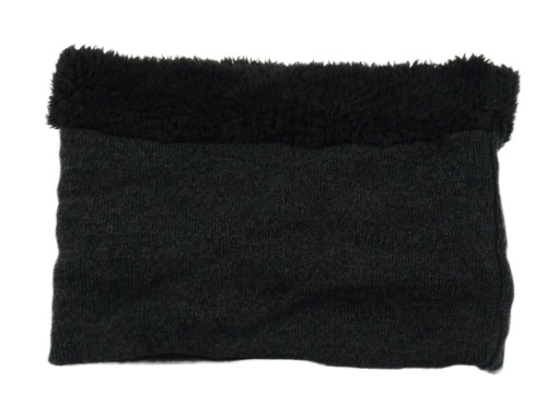 Tmavošedo-černý melírovaný pletený zateplený nákrčník s huňatým lemem