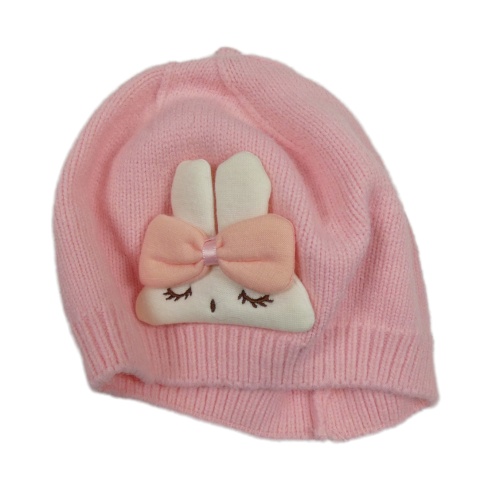 Růžová pletená čepice se zajíčkem
