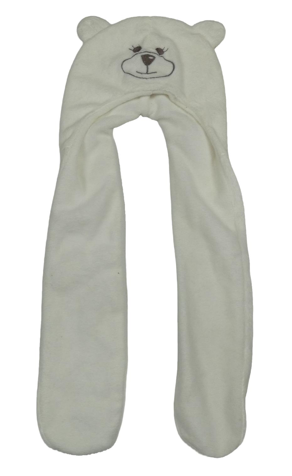 Bílá plyšová čepice s šálou - medvěd Ergee