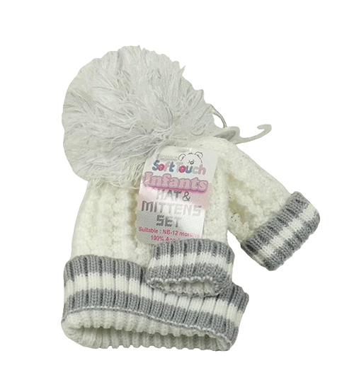 Nové - 2set - Bílá pletená čepice s bambulí + rukavice