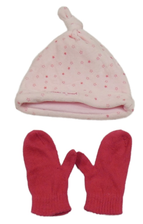 2Set - světlerůžová sametová čepice s hvězdičkami early days + malinové palcové rukavice X-MAIL