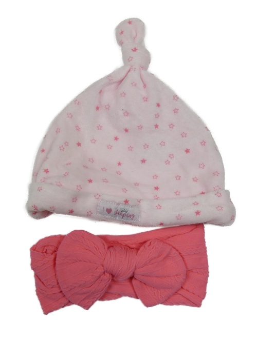 2 Set - růžová čelenka s mašlí + světlerůžová sametová čepice s hvězdičkami