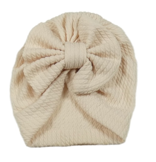 Světlepudrová vzorovaná turbanová čepice s mašlí
