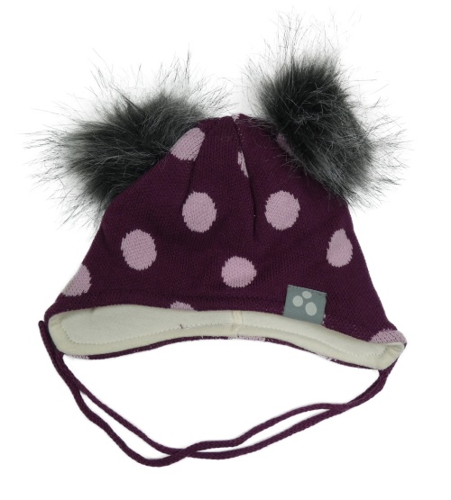Vínová pletená podšitá ušanka s puntíky