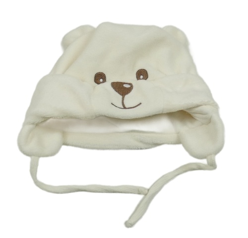 Krémová chlupatá čepice - medvěd
