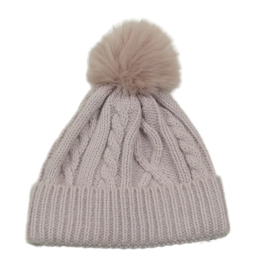 Světlerůžová pletená vzorovaná čepice s bambulí