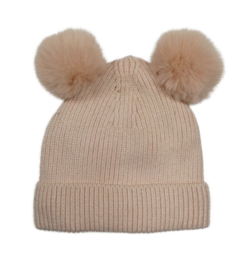 Světlerůžová žebrovaná pletená podšitá čepice s bambulemi Peacocks
