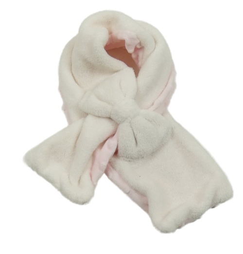Smetanová plyšová oboustranná zateplená šála s mašlí