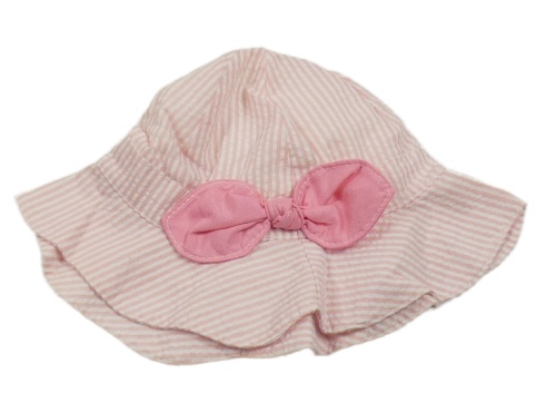 Růžovo-bílý pruhovaný krepový klobouk s mašlí