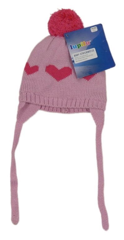 Nové - Růžová pletená čepice se srdíčky a bambulí Lupilu