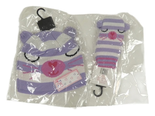 Nové - Bílo-fialová pruhovaná čepice s čumákem + rukavice