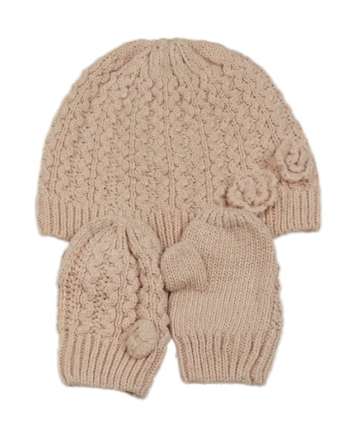 2set - Světlerůžová čepice s kytičkami + rukavice