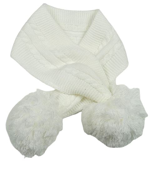 Bílá pletená šála s bambulemi
