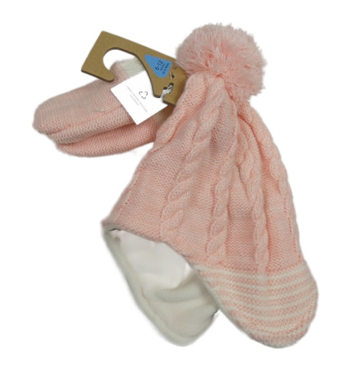 Nové - 2 set - růžová pletená vzorovaná čepice s bambulí + pletené rukavice Nutmeg