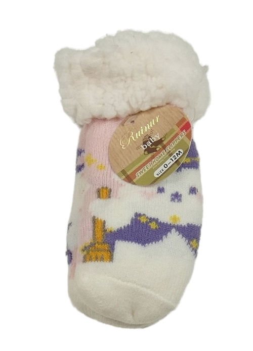 Nové - Světlerůžovo-bílé zateplené protiskluzové ponožky s obrázkem