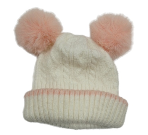 Smetanová žebrovaná vzorovaná čepice s bambulí First steps