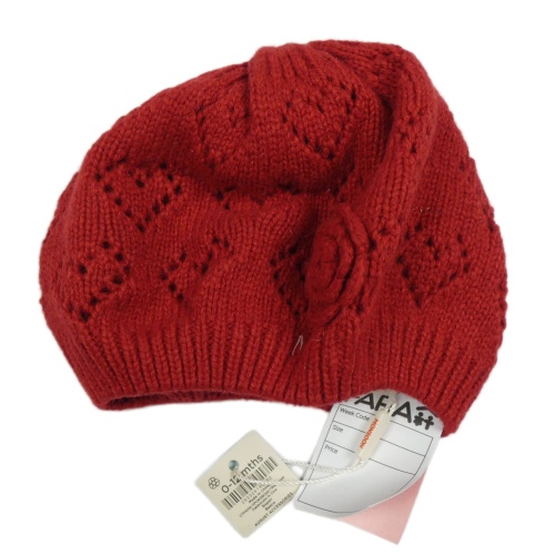 Nové - Červená ažurová vlněná čepice s kytičkou Monsoon