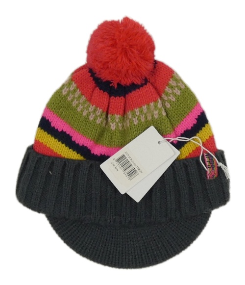 Nové - Antracitovo-barevná pruhovaná čepice s bambulí a kšiltem