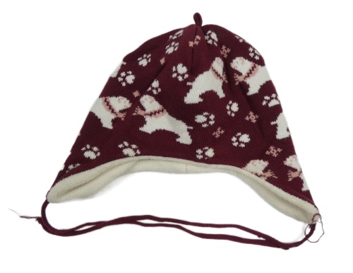 Tmavovínová pletená zavazovací čepice s medvídky PUSBLU