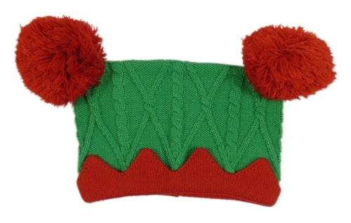 Zeleno-červená pletená čepice s bambulemi Nutmeg