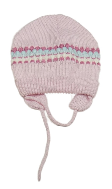 Světlerůžovo-bílo-modrá čepice se vzorem tkaničkami