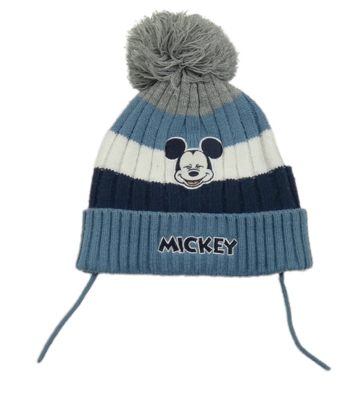 Modro-šedo-bílá čepice s Mickeym a bambulí Disney