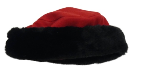 Červeno-černá flaušová čepice s kožešinou Dunnes