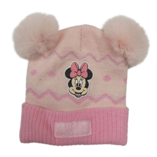 Světlerůžová pletená čepice s Minnie a bambulemi Primark