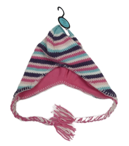 Nové - Růžovo-barevná pruhovaná čepice s třásněmi