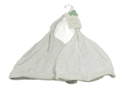 • Nové- 2x bavlněná čepice bílá vzorovaná+ šedo-bílá pruhovaná Miniclub